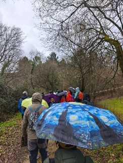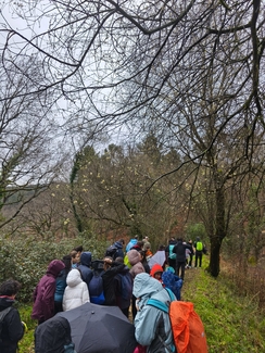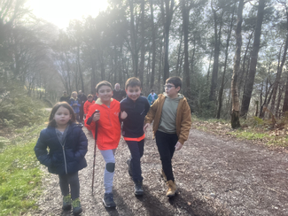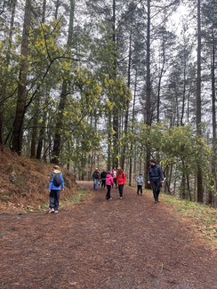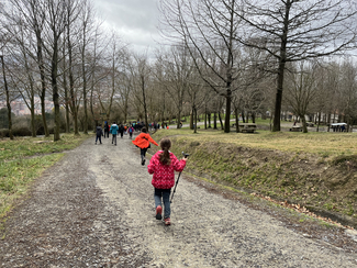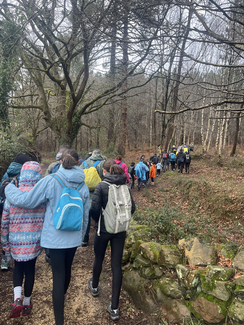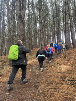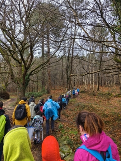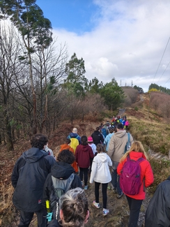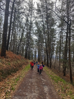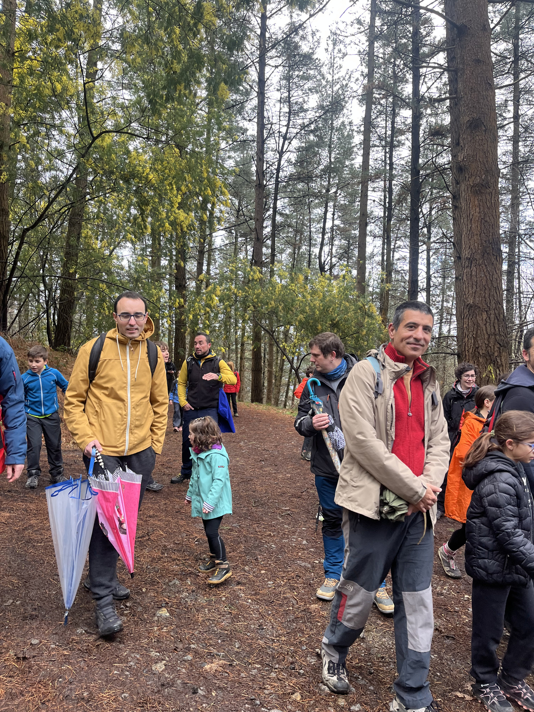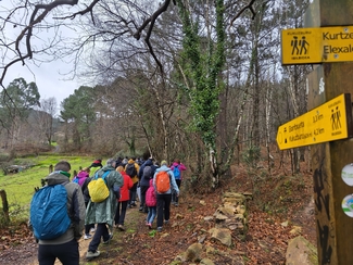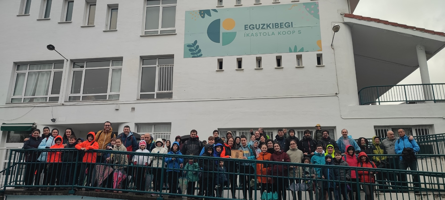 Adin ezberdinetako ikasleak, irakasle eta familia elkarrekin abiatu ginen: lehenengo autobusez Eguzkibegira, eta handik aurrera 10 kilometro inguruko ibilaldia oinez, menditik barrena, Kirikiñora iritsi arte. Eguraldiak ez zigun beti erraza jarri —tarteka euria, tarteka eguzkia— baina horrek ere ez zuen gure gogoa zapuztu.